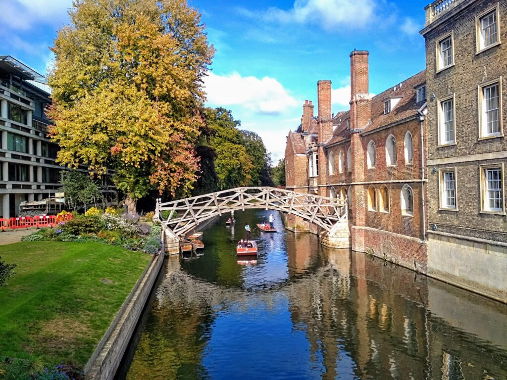 Head towards the scenic River Cam, where you can watch or experience punting—a classic Cambridge activity. While there, don’t miss the iconic Mathematical Bridge, known for its unique wooden design.